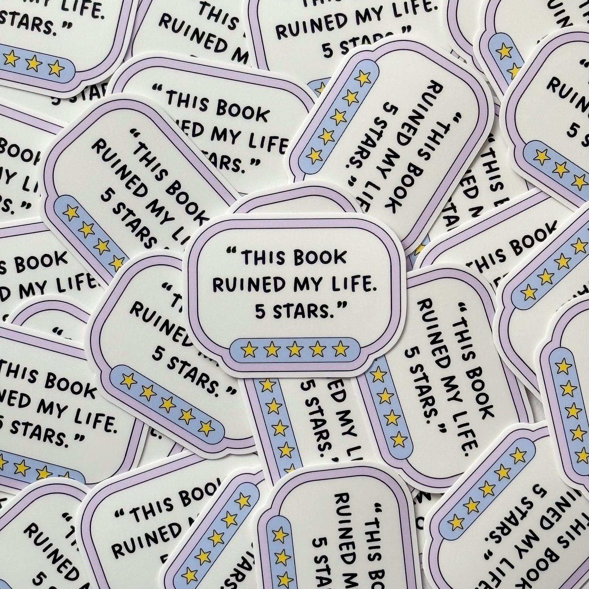 Matte, waterproof sticker measuring 2.5 inches. Water and fade-resistant, perfect for your Kindle, reading journal, or favorite water bottle.